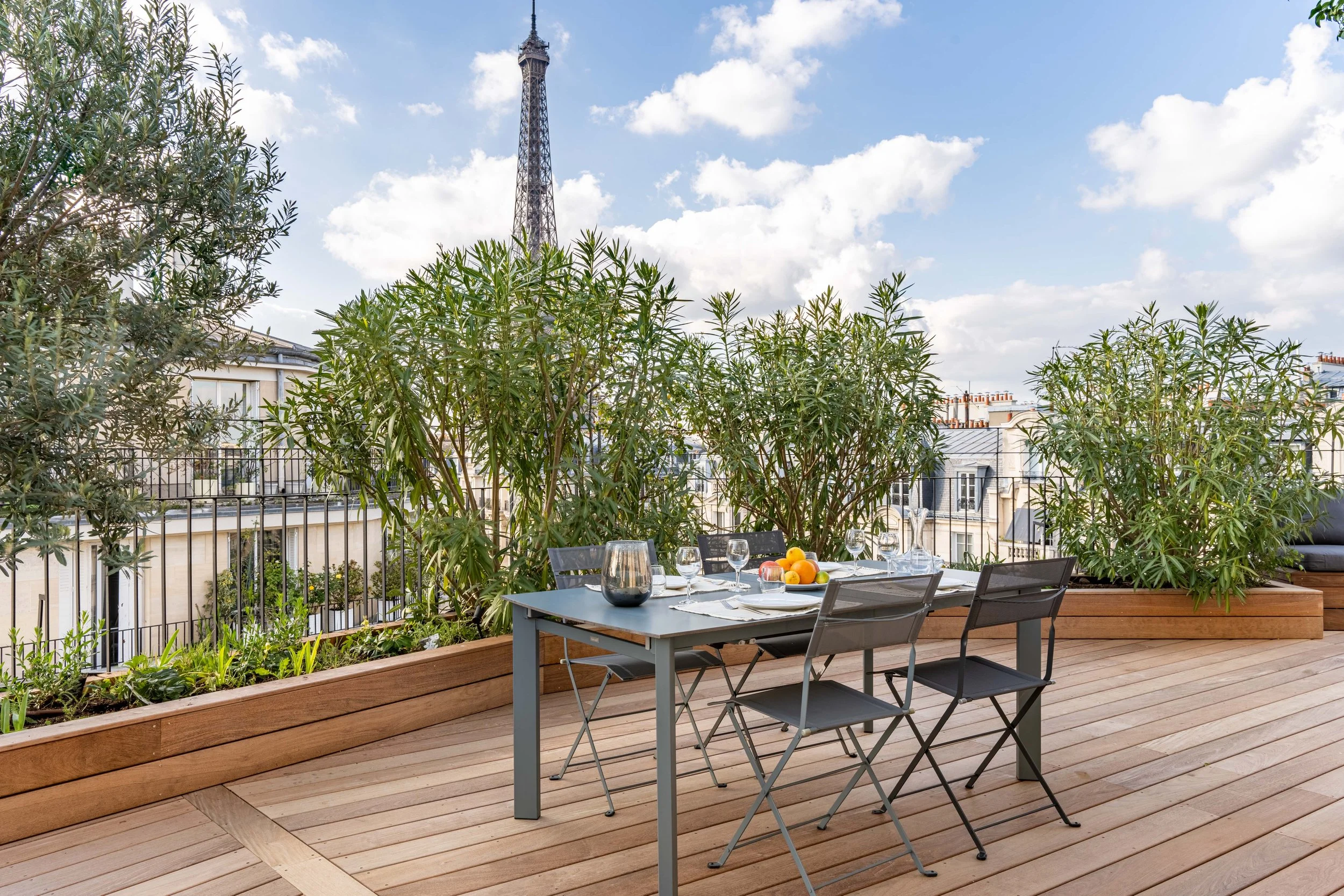 Louer un appartement avec vue sur la Tour Eiffel est idéal pour toutes les occasions. Que ce soit pour des vacances en famille, une lune de miel inoubliable, un anniversaire, un séjour d’affaire, un dîner de prestige ou un lancement de produit, choisir un appartement ou un penthouse à Paris avec une vue dégagée sur la Tour Eiffel confère un caractère exceptionnel à votre séjour ou événement. Vous pourrez savourer un dîner avec la Tour Eiffel scintillante en arrière-plan, ou simplement vous réveiller chaque matin avec cette vue époustouflante depuis l’un de nos appartements traversants avec terrasse.