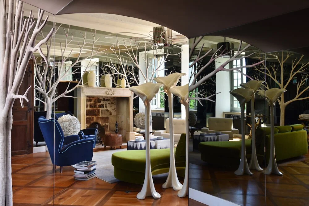Ce magnifique château du XVème siècle et son domaine, protégés au titre des monuments historiques, jouissent d’une situation géographique privilégiée au cœur de la région verdoyante de la Dordogne. Situé à 4 minutes du charmant village périgourdin d’Urval, le château est entouré de jardins, prairies vallonnées et sous-bois à perte de vue. Dans l’aile principale, chaque pièce a été réaménagée avec un mobilier design sur-mesure où le charme de l’ancien côtoie des objets d’art atypiques tels que les spirales psychédéliques de la salle à manger. Les 6 luxueuses suites avec salles de bain en marbre véritable ainsi que les nombreux espaces de vie pour se réunir en famille ou entre amis confortablement donnent une impression d’immensité. Dans l’aile indépendante du château, 3 chambres supplémentaires et plusieurs espaces communs offrent une totale autonomie pour 6 convives. À quelques minutes à pied, toujours au beau milieu de la nature verdoyante du domaine, deux dépendances complètement autonomes offrent également 7 suites avec salle de bain privative ainsi qu’une seconde piscine qui peut être chauffée sur demande qui ravira petits et grands.