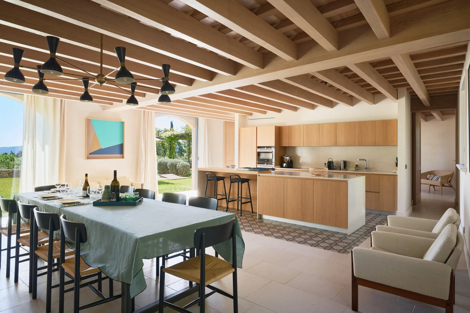 Cuisine, salle à manger, arrière-cuisine avec cave à vin